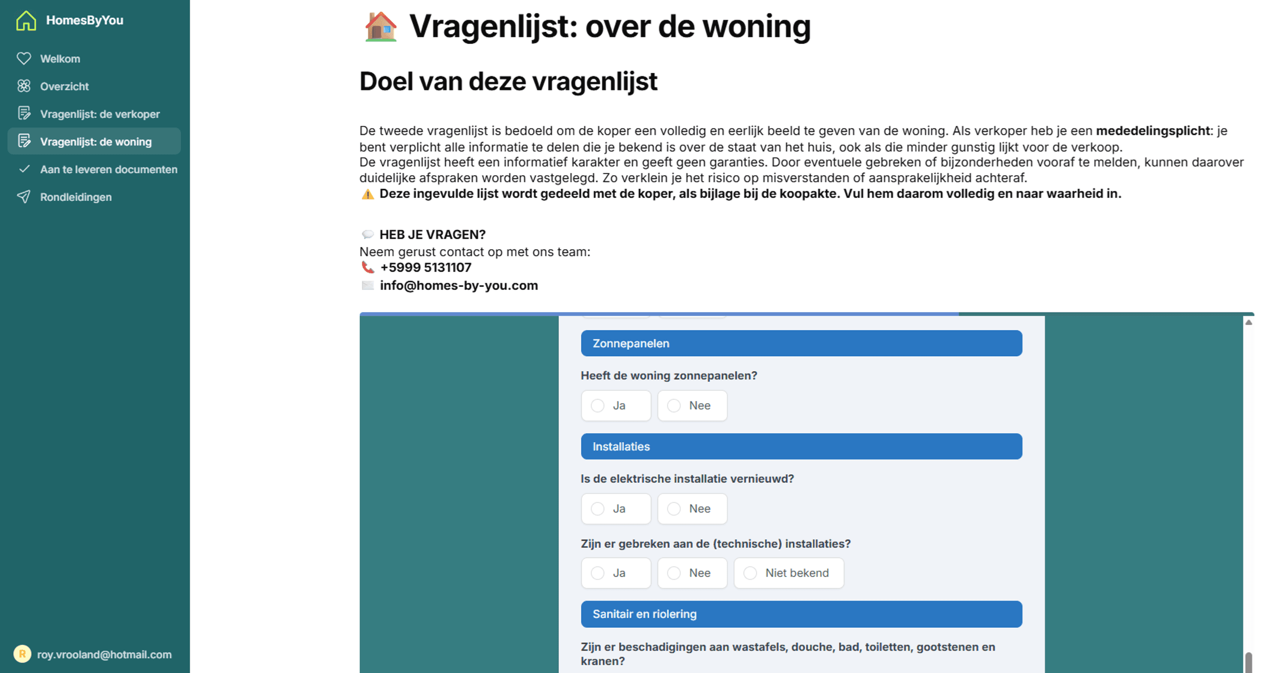 In het portaal vragen we je om een aantal vragenlijsten in te vullen. Deze gaan zowel over jou als verkoper, als over de woning die je verkoopt. Dit is niet alleen handig voor een compleet beeld van de woning, maar ook noodzakelijk vanwege de mededelingsplicht. Als verkoper ben je wettelijk verplicht om alle relevante informatie te delen met potentiële kopers. Door de vragenlijsten in te vullen, voldoen we samen aan deze verplichting en voorkomen we problemen in de toekomst.
